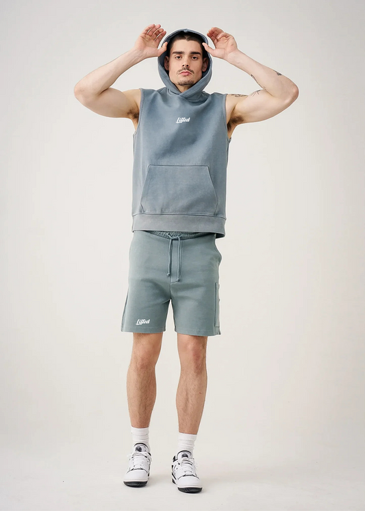 Sage 14 Ouce Sleeveless Garment Dye Interlock Hooded short set